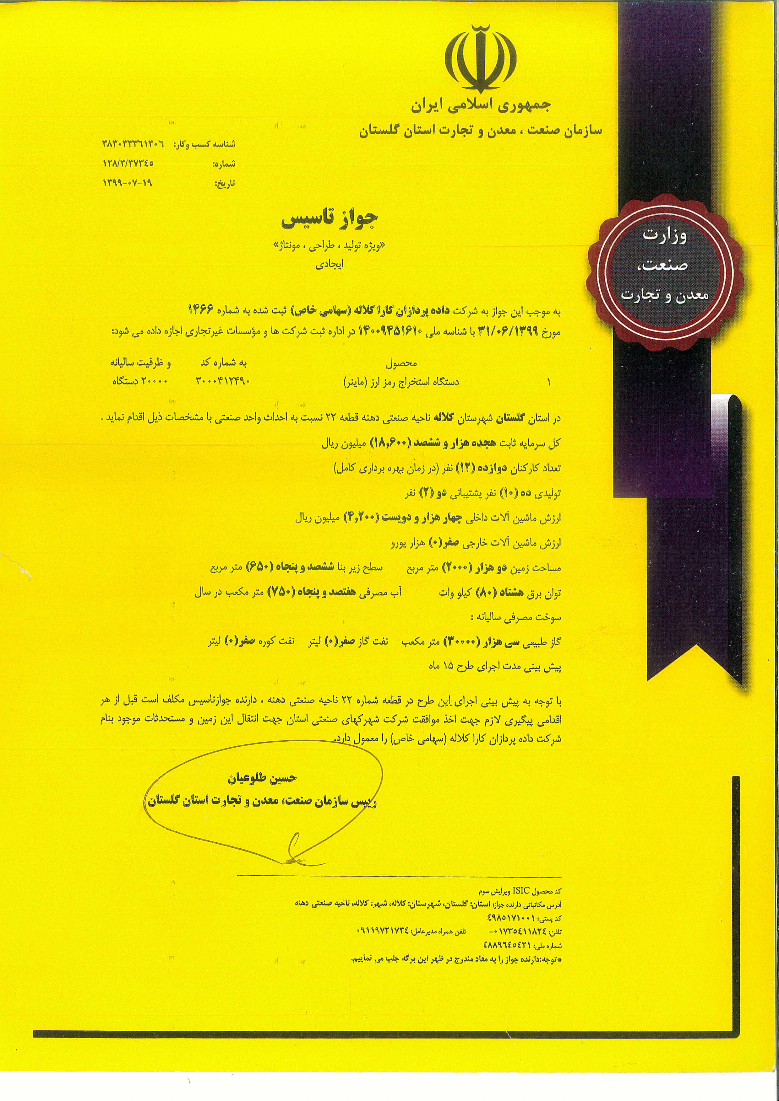 شرکت داده پردازان کارا با نام تجاری کارا ماینر ، برترین و بزرگترین تولید کننده انواع دستگاه استخراج ارز دیجیتال در ایران میباشد.تمامی دستگاه های تولیدی شرکت کارا ماینر توسط مجرب ترین متخصصان و با بالاترین کیفیت ممکن به هموطنان ارایه میگردد.شما میتوانید بدون نگرانی بابت خدمات پس از فروش و گارانتی محصولات خرید خود را از این مجموعه انجام دهید. این شرکت مفتخر است شما هموطنان را در زمینه ماینینگ،اخذ مجوز قانونی،مشاوره در ساخت بنا ، مشاوره در خرید دستگاه و در نهایت پشتیبانی دستگاه ها یاری نماید، این شرکت مفتخر به اجرا و بهره برداری از بزرگترین مزارع استخراج رمزارز با بالاترین استاندارد های مربوطه در سطح کشور است شما میتوانید درخواست مشاوره راه اندازی فارم را از قسمت ارتباط با ما سایت به مجموعه ارسال کنید تا توسط متخصصان مجموعه برسی گردد